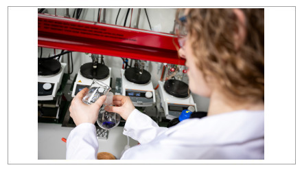 BU: Um erstmalig komplett biobasiertes PBS zu erhalten, braucht es eine Spezialchemikalie. Die Forschenden arbeiten an einer neuartigen Technologie. Foto: Universität Oldenburg/ Matthias Knust